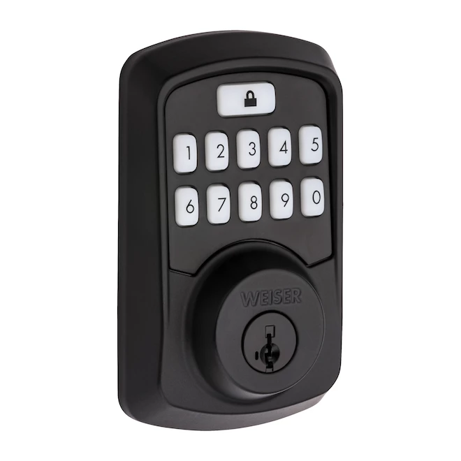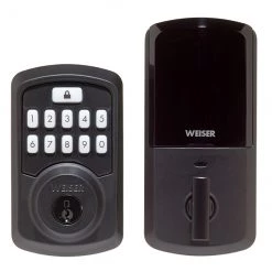 This Aura smart lock with a black iron finish by Weiser will provide a safe yet easy to use deadlock for your home. It can be locked or unlocked by using the keypad or a key from the outside as well as with the turn button from the inside. Using the Weiser App within Bluetooth range, you can lock or unlock your door and program up to 250 user codes that can be scheduled and customized on your smart phone. You can also receive notifications or view event history. The keypad features a one-touch lock button and the Smartkey technology allows you to rekey the lock in seconds. This product is BHMA grade 2 certified and it is backed by a limited lifetime warranty on mechanical parts and by a 1-year warranty on electronic components.