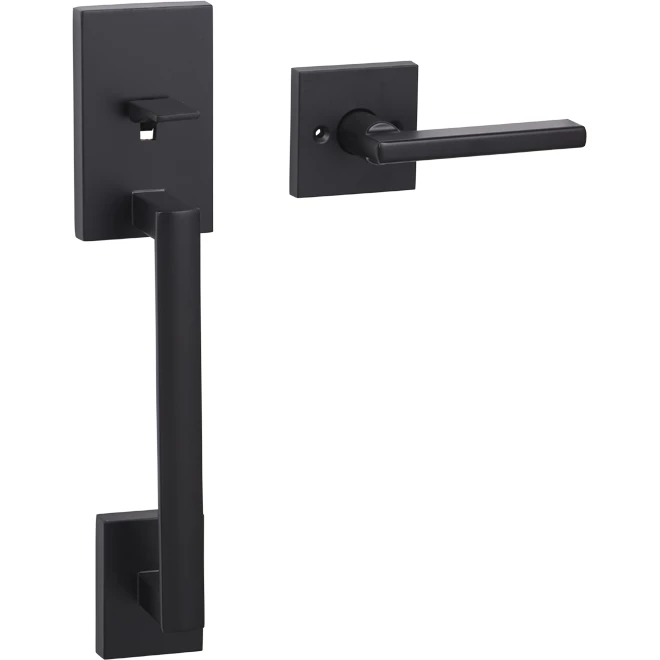 Give a modern and refined look to your entrance with this San Clemente gripset by Weiser. Sturdy and safe, this model is sold without the deadbolt. This marvelous entrance gripset with matte black finish is backed by a lifetime limited warranty.