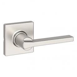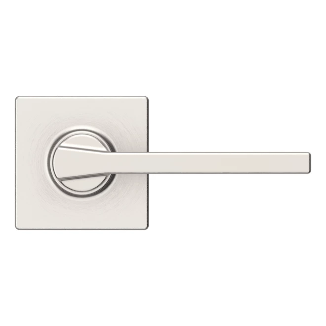 Combining the strength and durability of a Weiser product in a stylish and contemporary design, the Casey lever handle features a square shape and a satin nickel finish. It is reversible and perfect for interior hallway or closet doors that do not need locking. This passage lever is easy to install and meets ADA/ANSI A117.1 requirements. Includes a full lip square strike and 3 interchangeable faceplates; round corner, square corner, and drive-in collar. Adjustable backset 2.38-in to 2.75-in to fit all standard door preparations.