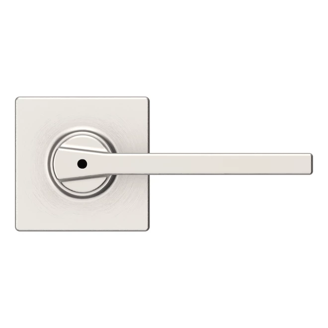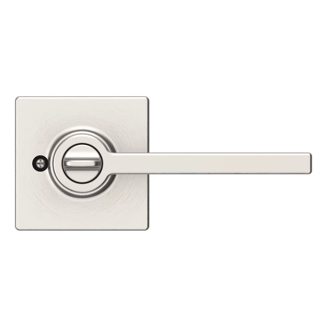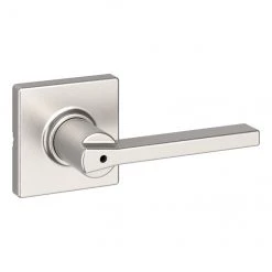 Combining the strength and durability of a Weiser product in a stylish and contemporary design, this Casey privacy door handle is used for interior doors that require a locking function such as bedrooms and bathrooms. Featuring a square shape and satin nickel finish, the lever handle is reversible and also meets ADA/ANSI A117.1 requirements. The locking mechanism functions with a turn piece on the interior of the lock. Includes a full lip square strike and 3 interchangeable faceplates; round corner, square corner, and drive-in collar. Adjustable backset 2.38-in to 2.75-in to fit all standard door preparations.