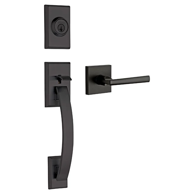 The Weiser® Tavaris/Vedani entry latch is uncompromising, it combines functionality, security and elegance, with a transitional look that will complement any home style. Intended for residential use on exterior doors, the latch has a reversible internal lever handle. Its ANSI/BHMA grade 1 heavy-duty safety deadbolt lock fits 2 3/8″ or 2 3/4″ spacing is operated by the key on the outside, by a fastener on the inside and fits 1 3/4” thick doors. Featuring its SmartKey(TM) key change technology that enables you to rekey your lock in three easy steps. The latch is sold with (2) keys and is offered here in a matte black finish. Moreover, this product features Microban(R) antimicrobial technology, preventing microorganism growth on surfaces. This product is covered by a lifetime warranty on mechanical parts and finish.