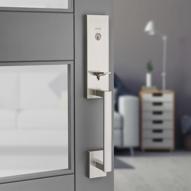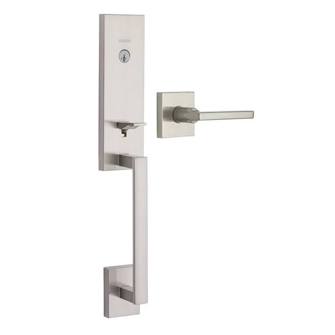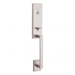 This low-profile handleset with 1/2″ exterior depth and nickel satin finish gives your entrance door a touch of elegance and modern accents. Installation is easy, requiring a simple screwdriver, while the adjustable latch fits any standard door preparation. The lock features SmartKey(R) rekeying technology, which is useful if you want to adapt the lock with your new key. Moreover, this product features Microban(R) antimicrobial technology, preventing microorganism growth on surfaces. Lifetime limited warranty on both finish and mechanism.