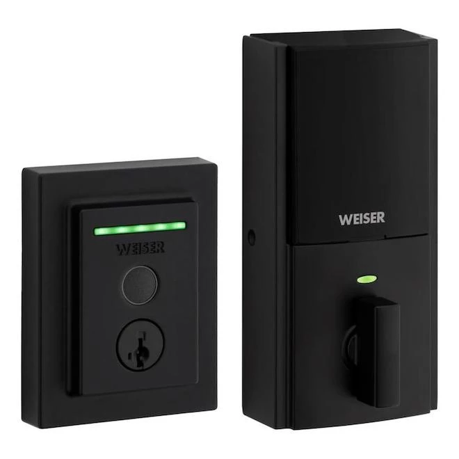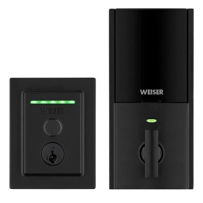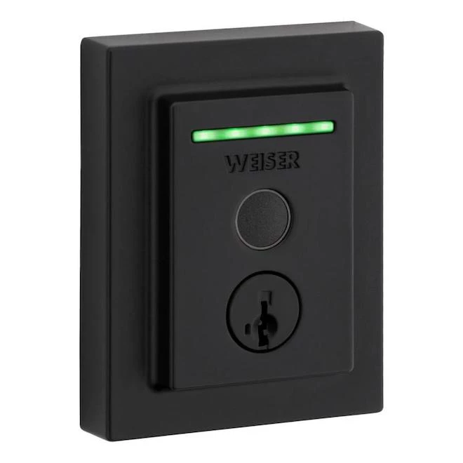 The Halo Touch fingerprint smart lock by Weiser with a matte black finish allows you to simply use your unique fingerprint to lock and unlock your door. It connects directly to your home Wi-Fi network and smartphone for a secure smart home that does not require a third-party smart home hub, panel or subscription. With up to 100 fingerprints (50 users), you can give access to your family with their unique fingerprint and manage access through the Kwikset app. You can also lock and check the status of Halo using voice commands with Amazon Alexa and Google Assistant. This single cylinder deadbolt can be locked or unlocked by using your fingerprint or key from the outside as well as the turn button from the inside. Monitor home security with notifications of your lock’s activity and view the lock event history from your smartphone using the Kwikset app. SmartKey security: protects against advanced break-in techniques and allows you to re-key your lock in seconds.