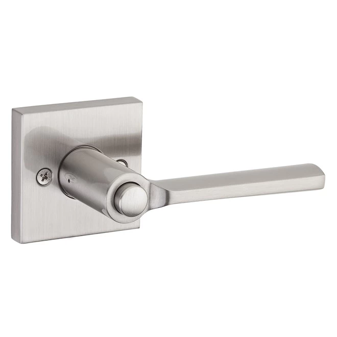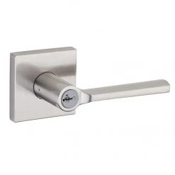 Blend simplicity with elegance with the Lisbon entry door lever handle from Weiser. Featuring a square shape and a satin nickel finish bringing a modern feel, this handle is for use on exterior doors that require locking. It has the SmartKey® re-key technology which allows you to re-key the lock yourself quickly in 3 easy steps, is fully reversible and installation is quick and easy. The locking mechanism functions by pressing the push button on the interior of the lock. Limited lifetime mechanical and finish warranty.