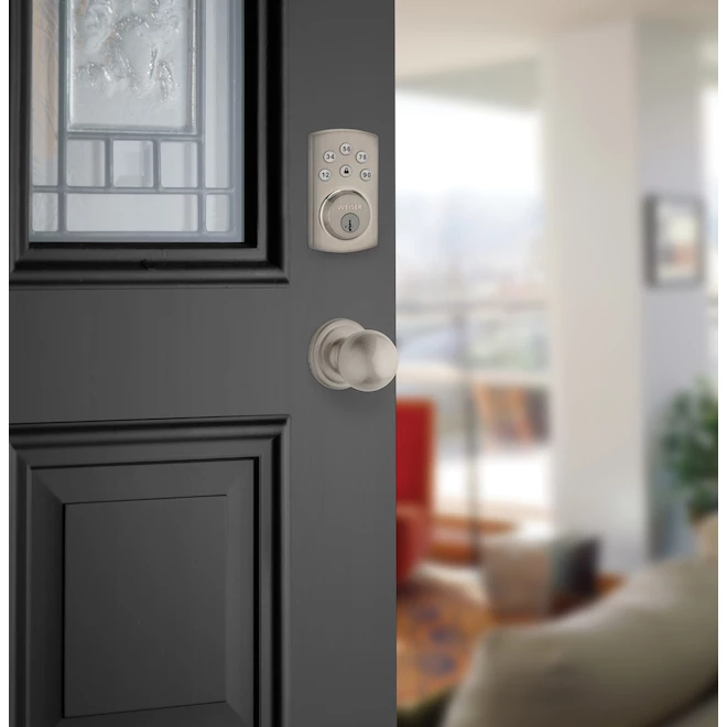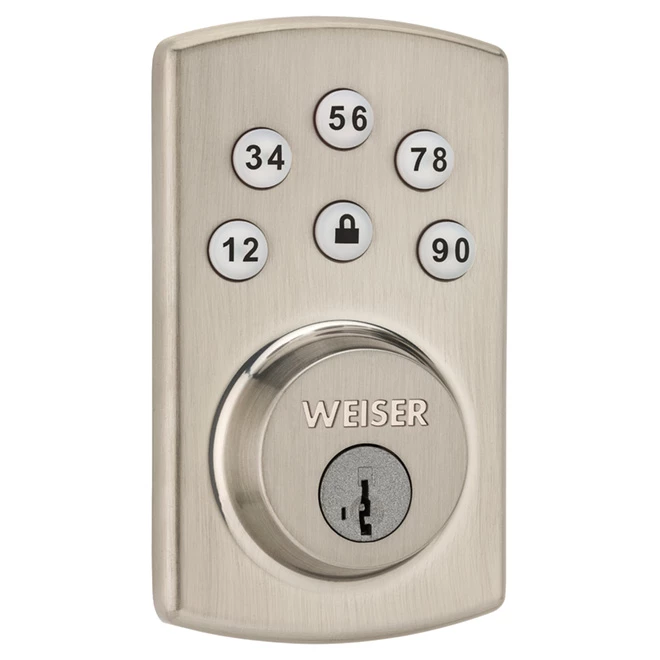 Keep your home safer and more secure when you install this Weiser Powerbolt 2 reprogrammable electronic keypad door lock on all entry doors. You can open this door lock with the keypad or a traditional key. Locking the door is easy with it’s user friendly SmartKey technology, allowing you to re-key the electronic keypad lock in seconds. Lock the door with just the press of a button. The satin nickel finish is attractive and will look good on any door. This door lock installs easily with no wiring and requires four AAA batteries to operate.