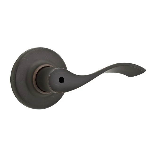 This Weiser Belmont privacy handle features curved aesthetics, a Venetian bronze finish and a 2 3/8″ to 2 3/4″ adjustable latch. It blends in any decor and fits in any standard door with a thickness ranging from 1 3/8″ to 1 3/4″. This product features Microban(R) antimicrobial technology, preventing microorganism growth on surfaces. Lifetime warranty.