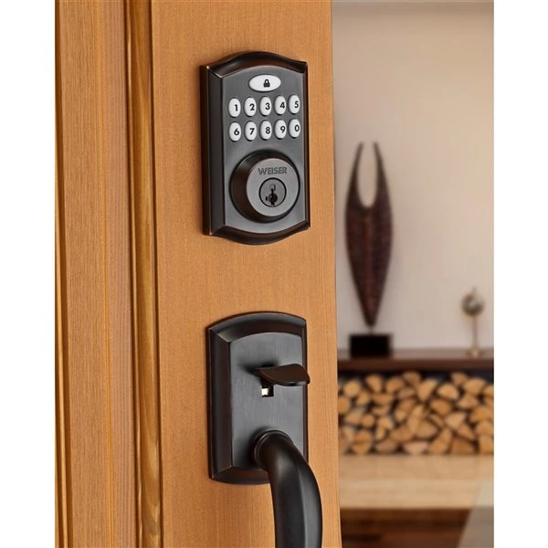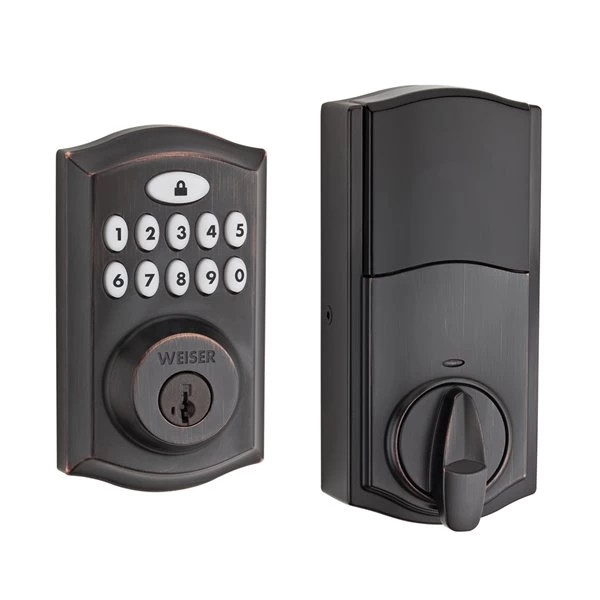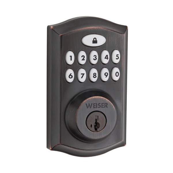 With Weiser you can blend simplicity with elegance. Whether you’re looking for traditional, transitional or contemporary style, our selection and finishes will make it easy to find the right accent for your home. This single cylinder deadbolt can be locked or unlocked by using the keypad or key from the outside as well as the turn button from the inside. The Venetian Bronze finish is hand-rubbed to reveal unique bronze highlights and provides a rich and warm complement to the product’s style.