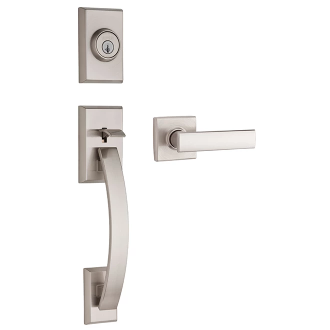 The Tavaris gripset from Weiser(R) features a transitional style that will enhance the refined accents of your entrance door with its satin nickel finish. It is equipped with SmartKey(R) technology which lets you re-key the door with any chosen key in 3 quick and easy steps. Fully reversible lever fits both right handed and left handed doors that have a thickness comprised between 1 3/8″ and 1 3/4″. It features an adjustable latch that adjusts to all standard door preparations and meets ANSI/BHMA class 1 safety standards. Moreover, this product features Microban(R) antimicrobial technology, preventing microorganism growth on surfaces. Lifetime mechanical parts and finish warranty.